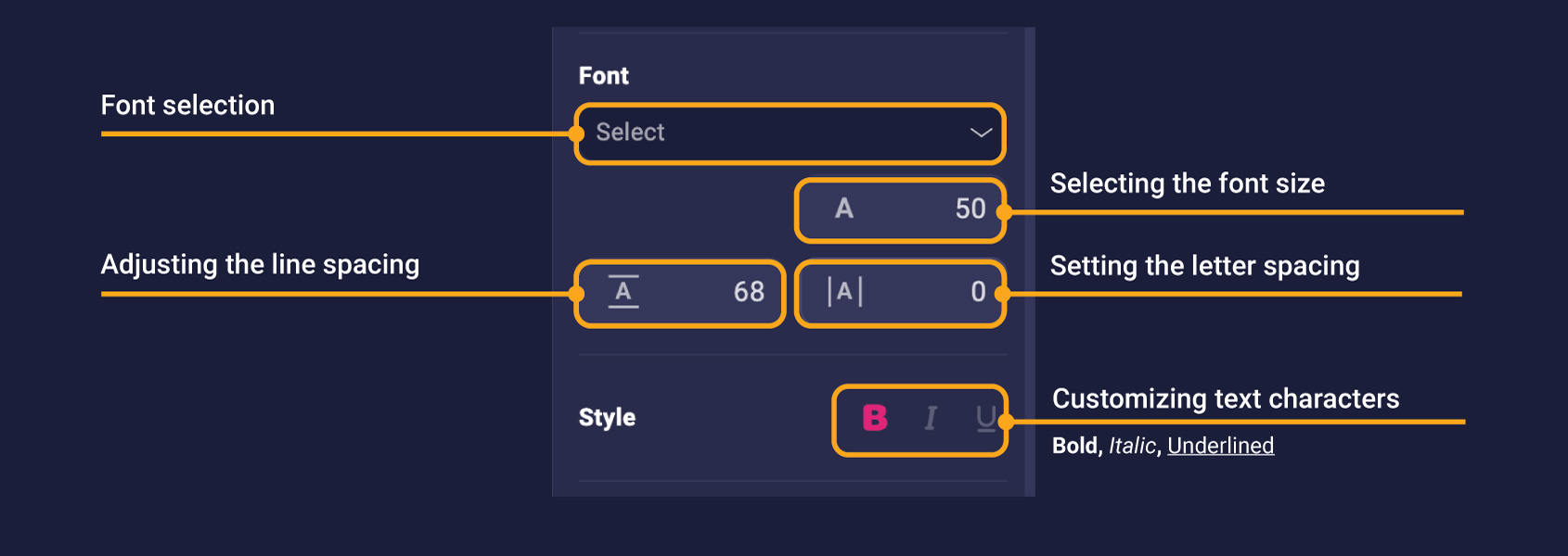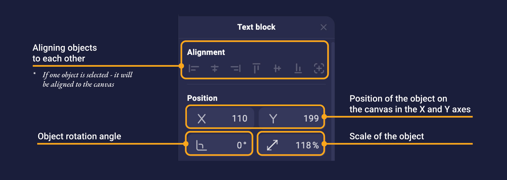 Clicking on a text object on the idle brings up a set of settings: